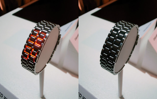 A designer series LED watch which displays time using LED plates embedded in the metal chain of the watch which gives not only a great stylish look but also appears handy. This watch displays time if we press the button by illuminating the LED display. Under normal conditions, this watch looks like a bracelet which makes the wearer a trendy person. Made with ABS resin material, this gadget is available in 3 colors Black, Silver and Ultramarine. If you love designer series you must try this watch!
